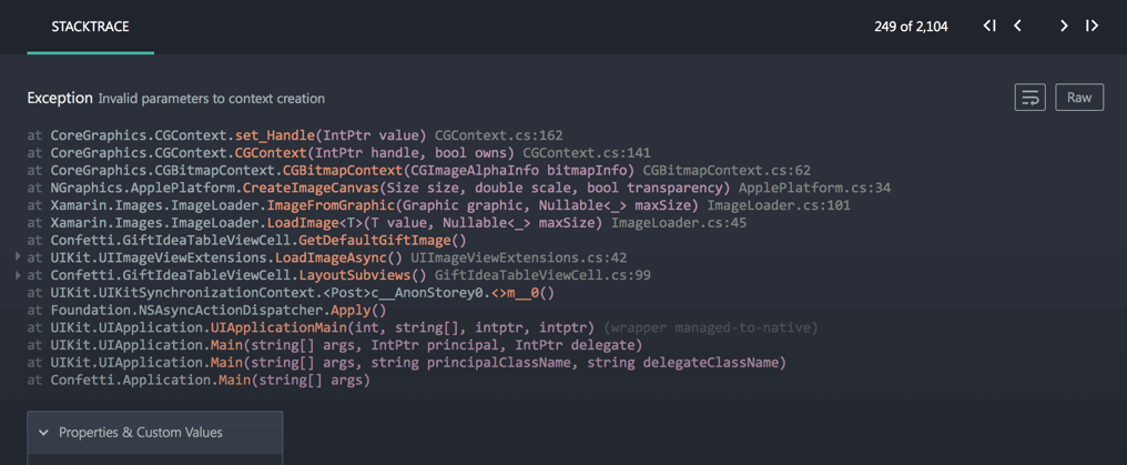 at CoreGraphics.CGContext.set_Handle (IntPtr value) [0x0001b] in /Users/builder/data/lanes/2097/b5396c29/source/maccore/src/CoreGraphics/CGContext.cs:162